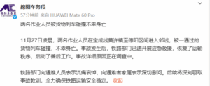 في مساء يوم 27 نوفمبر، أصدر قطاع سكك حديد ميان يانغ تقريراً عن الحالة أفاد…