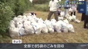 متطوعون يجمعون 85 كيسًا من البلاستيك والنفايات في منطقة المد والجزر بفوجيماي بناغويا.