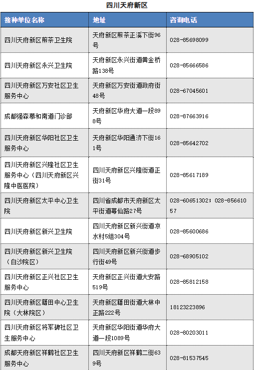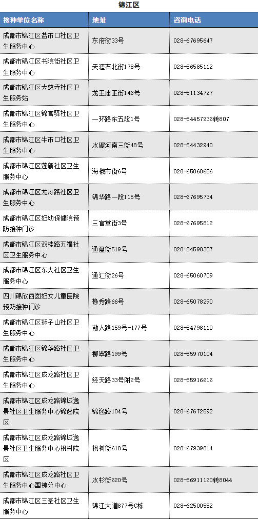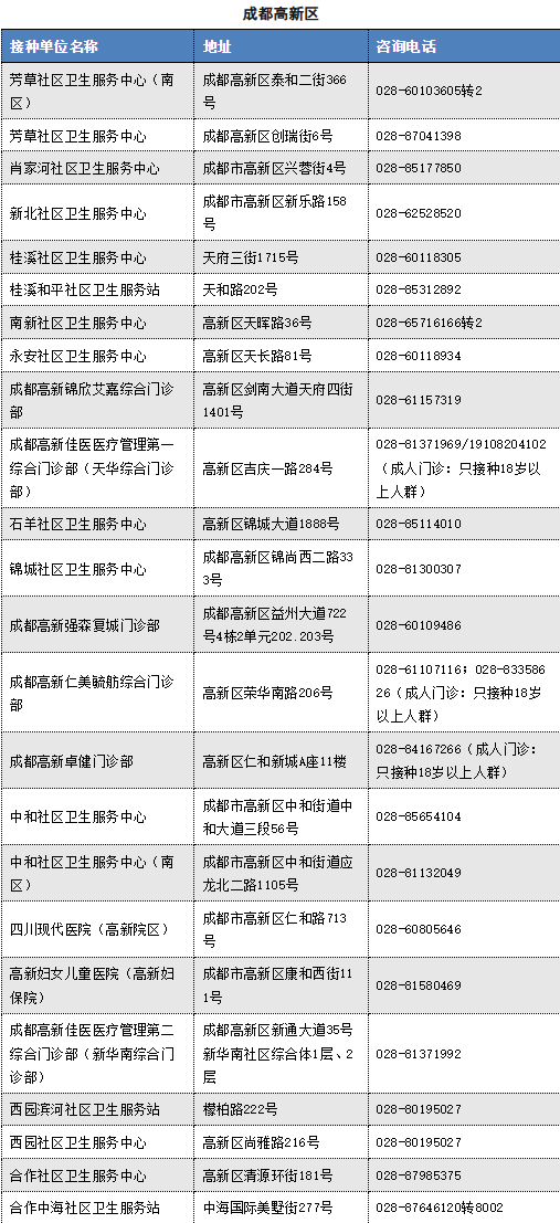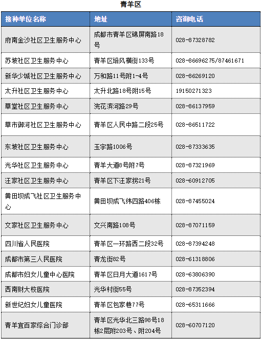 Information on Chengdu Influenza Vaccination Units