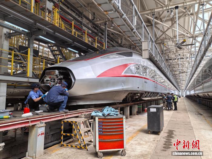As the 2026 May Day holiday approaches, the Chongqing Depot of China Railway Chengdu Bureau Group Co., Ltd. has conducted a comprehensive inspection of its 137 EMU trains, combining spring maintenance and flood prevention efforts to enhance operational quality and ensure safe transportation during the holiday period. The depot strengthened checks on key components such as air conditioning systems, high-voltage traction equipment, and running gear, while also organizing staff to improve interior service facilities including seats, luggage racks, and restrooms, creating a warm and comfortable atmosphere for passengers. The image shows the EMU inspection site.