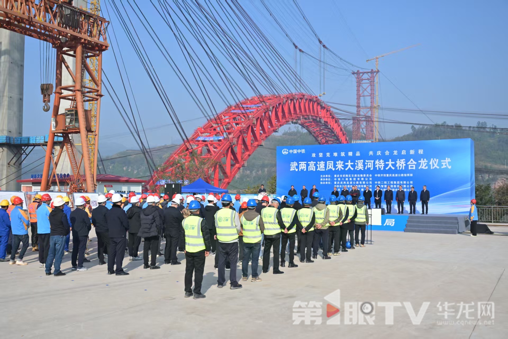 Today, the steel truss arch of the Fenglai Daxi River Bridge on the Chongqing Wulong to Liangjiang New Area Expressway (hereafter referred to as the Wuliang Expressway) was successfully closed, marking a major milestone in the bridge’s construction with the conversion of the 10,000-ton cantilever system.