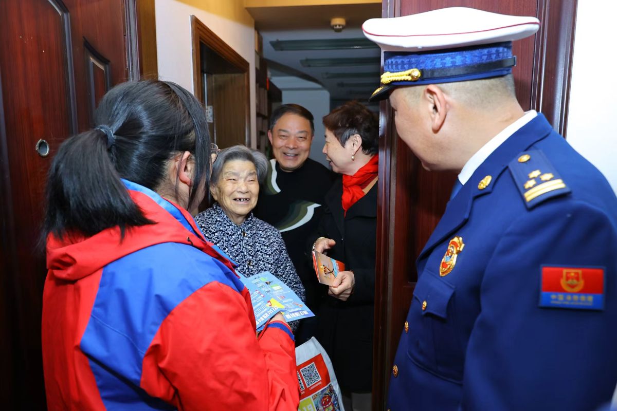 In the afternoon, at the Xiangyuan Lidu residential community in Putuo District, teams consisting of personnel from public security, civil affairs, street offices, neighborhood committees, power, and gas sectors conducted door-to-door promotion and service visits to households of key care groups. They delivered safety promotional materials, provided reminders on safe use of fire, electricity, and gas, and replaced power strips that did not meet safety standards or were aged. Staff reminded key care groups to use electric blankets safely, keep electric heaters away from combustible materials, avoid drying clothes on electric heaters, refrain from parking or charging electric bicycles indoors, remember never to leave the kitchen unattended while cooking, and avoid smoking in bed. For the very elderly, proactive care and assistance were offered, including checking whether electrical wiring and gas stoves met safety requirements and helping to clear combustible clutter from corridors, balconies, and kitchens.