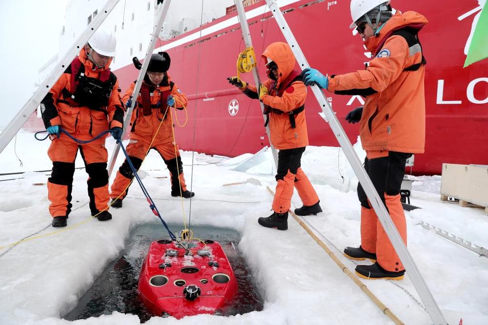 The dual-mode AUV is an underwater robot capable of both underwater cruising and subglacial crawling. During this expedition, it completed 12 dives, successfully passed multiple performance tests and verifications, and simultaneously conducted underwater environmental observations, collecting hydrological and ecological data including conductivity, temperature, salinity, dissolved oxygen, chlorophyll, and subglacial video footage.