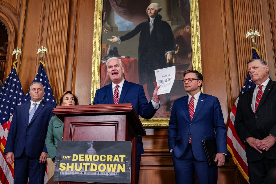8 de octubre de 2025, Washington, D.C. – Representantes republicanos asistieron a una rueda de prensa. El cierre del gobierno de EE. UU. entró en su segunda semana, con más de 250,000 empleados federales sin recibir sus salarios esta semana.