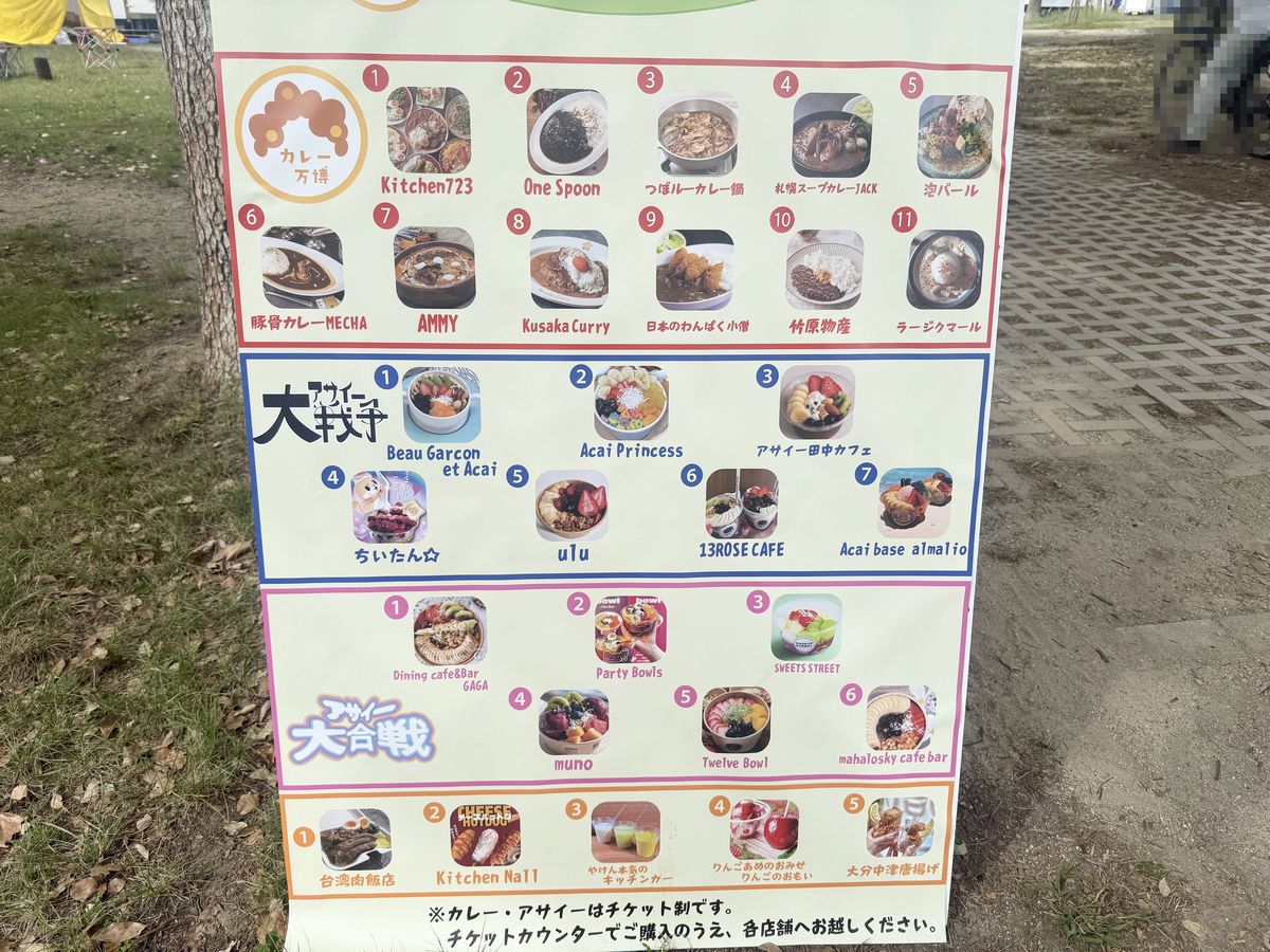 Los eventos «Expo Curry» y «Gran Guerra del Açaí VS Gran Batalla del Açaí» se celebran hasta el 13 de octubre de 2025, ¡y los visitamos el sábado 11 de octubre de 2025!¡En ambos eventos se pueden disfrutar varios estilos de curry y bowls de açaí!Primero, compra entradas anticipadas o del día en la taquilla.Compra tickets solo para el roux de curry, tickets solo para el arroz y tickets solo para el bowl de açaí, ¡y luego dirígete al lugar del evento!En el escenario especial dentro del recinto se realizan actuaciones en directo.También hay food trucks instalados.Aquí encontrarás puestos de festival con juegos de disparos y pesca de yo-yo.En este puesto de arroz, cambia tu ticket solo de arroz por la ración.Esta es la zona de la «Expo Curry».