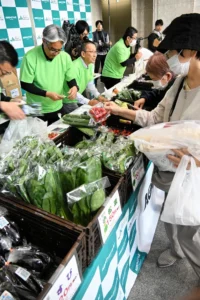 Se promocionan verduras frescas en el centro de la ciudad: «Mercado» en el Edificio Kita-no hasta el día 10, vende arroz nuevo y patatas.
