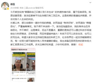 El 26 de noviembre, Cai Lei publicó en Weibo: Hoy me informaron de que hay…