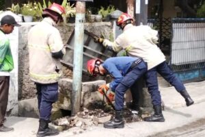Misteriosa nube de humo en Sukmajaya revela incendio en cable eléctrico subterráneo; dos bomberos heridos.