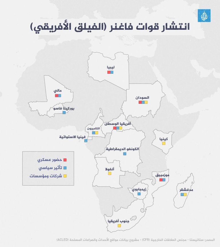 Map of African Legion deployment across the continent in early 2025