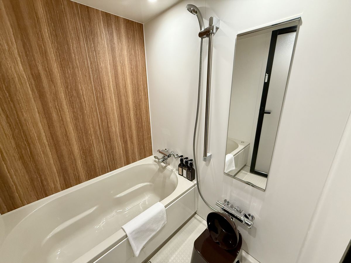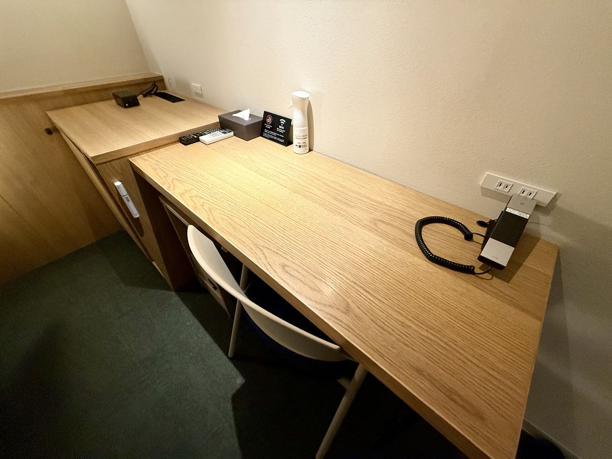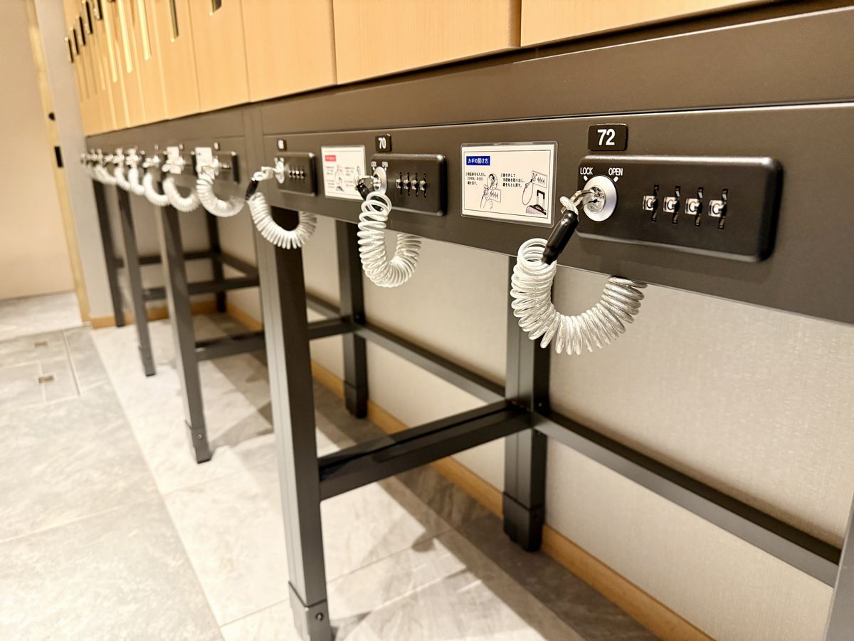 Une cabine est également installée ici, permettant au personnel d’assister les clients à distance via un écran et un microphone.Voici les casiers situés juste à côté de la réception.La partie inférieure des casiers peut accueillir les gros bagages comme les valises.Voici une chambre double.Selon les explications fournies, les demandes de lits légèrement plus grands sont fréquentes de la part des clients internationaux, c’est pourquoi le « Henna Hotel Express Osaka Namba Nipponbashi » a adopté des lits plus spacieux.Il y a un espace de rangement sous le lit pour les gros bagages comme les valises.Comme le lit, le bureau est également d’une taille plus grande.Voici la salle de bain, avec une grande baignoire et une impression de propreté et d’espace.Voici une chambre twin (avec deux lits simples).La chambre twin dispose également de lits de grande taille.Comme pour la chambre double, il y a un espace de rangement sous les lits.Le bureau de la chambre twin est d’une taille considérablement plus grande que celui de la chambre double.Voici la salle de bain de la chambre twin, offrant la même impression de propreté et d’espace que celle de la chambre double.