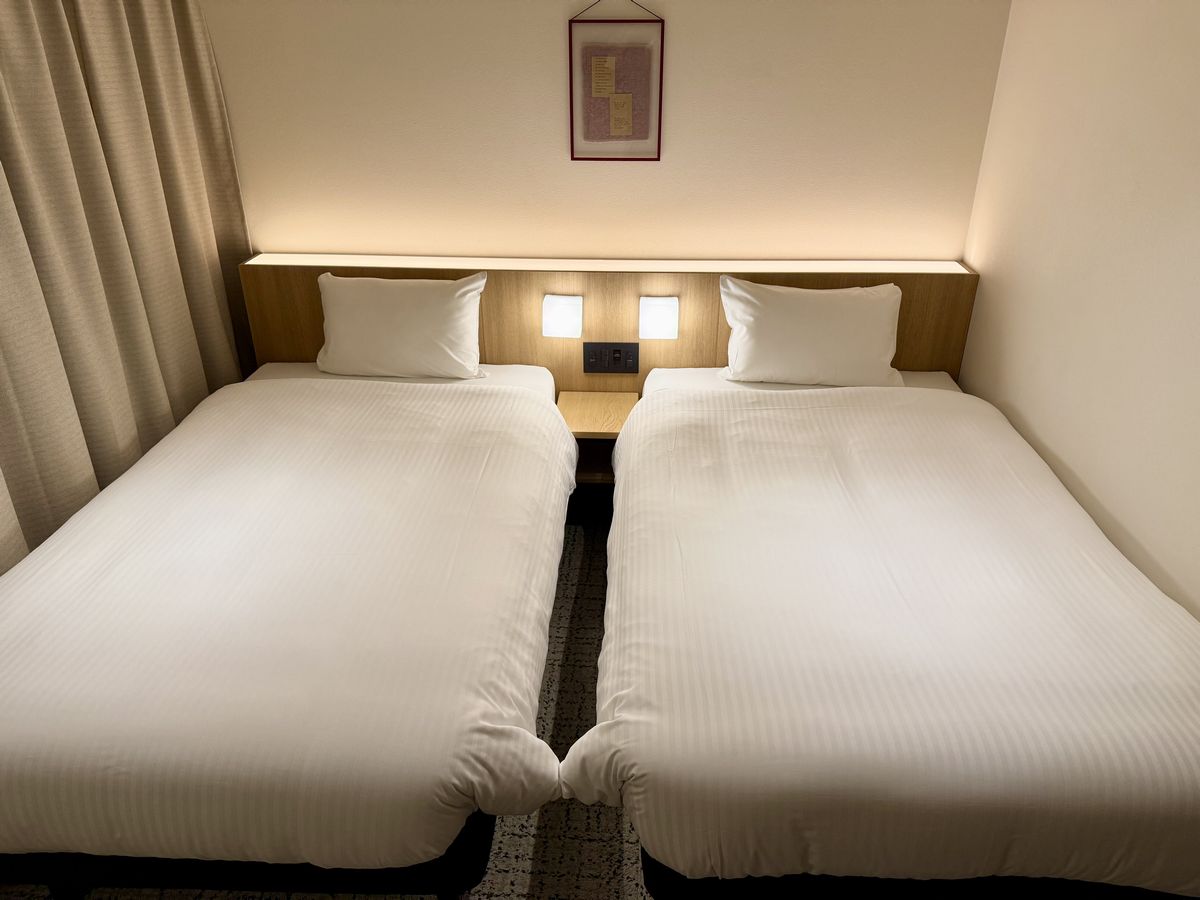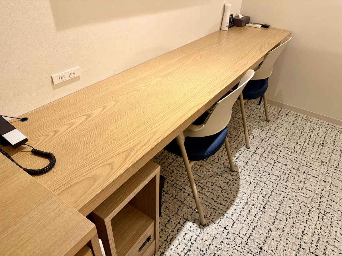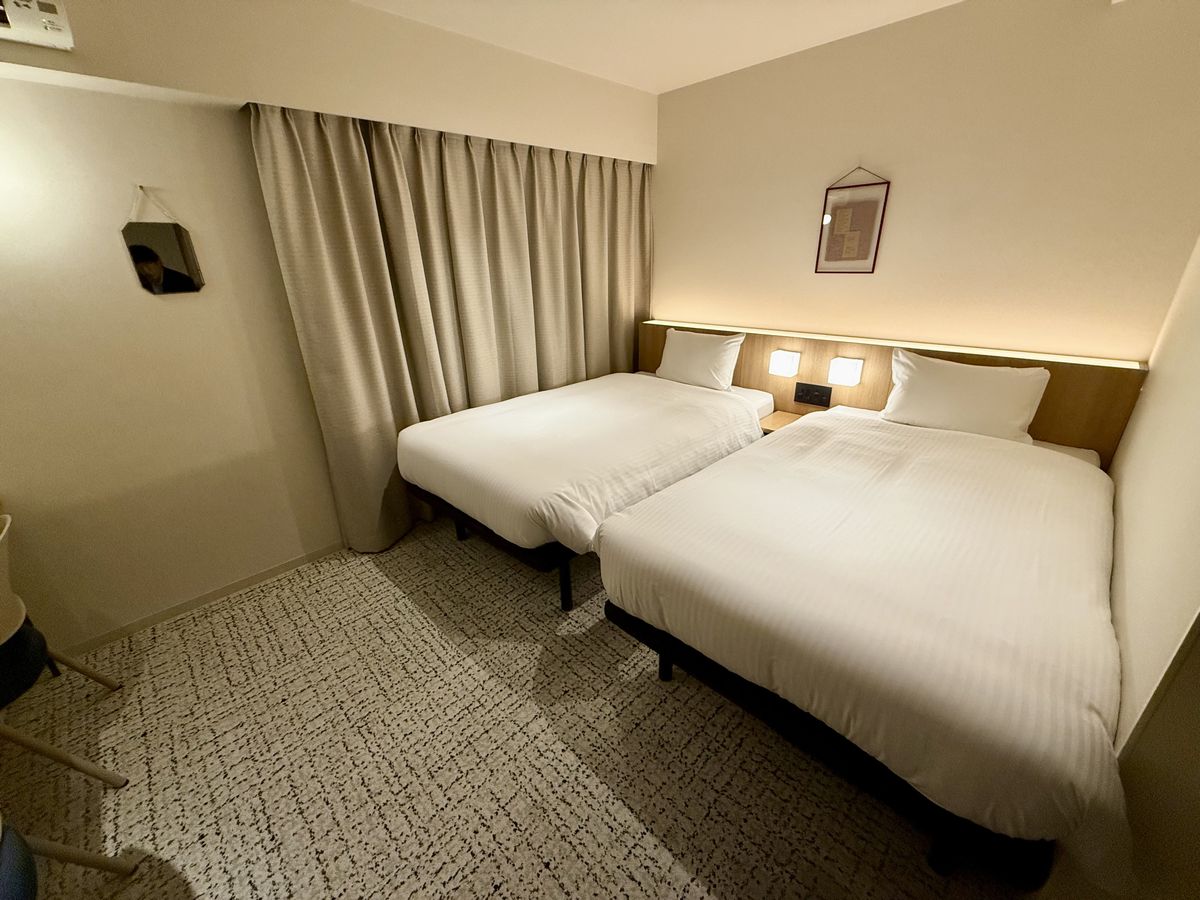Une cabine est également installée ici, permettant au personnel d’assister les clients à distance via un écran et un microphone.Voici les casiers situés juste à côté de la réception.La partie inférieure des casiers peut accueillir les gros bagages comme les valises.Voici une chambre double.Selon les explications fournies, les demandes de lits légèrement plus grands sont fréquentes de la part des clients internationaux, c’est pourquoi le « Henna Hotel Express Osaka Namba Nipponbashi » a adopté des lits plus spacieux.Il y a un espace de rangement sous le lit pour les gros bagages comme les valises.Comme le lit, le bureau est également d’une taille plus grande.Voici la salle de bain, avec une grande baignoire et une impression de propreté et d’espace.Voici une chambre twin (avec deux lits simples).La chambre twin dispose également de lits de grande taille.Comme pour la chambre double, il y a un espace de rangement sous les lits.Le bureau de la chambre twin est d’une taille considérablement plus grande que celui de la chambre double.Voici la salle de bain de la chambre twin, offrant la même impression de propreté et d’espace que celle de la chambre double.