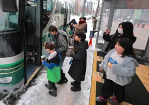 Retour au pays natal avec des souvenirs locaux, les trains et bus interurbains bondés même à Sapporo.
