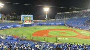 Un événement de diffusion publique au Stade de Yokohama avec les mascottes de l’équipe et…