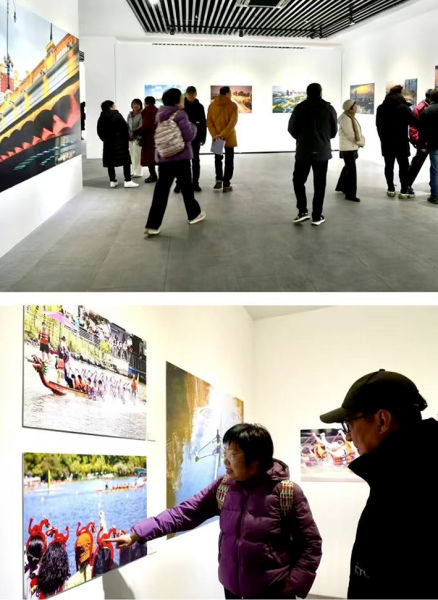 Bagian “Setengah Maraton Sungai Su” berfokus pada pemandangan di sepanjang kawasan Distrik Putuo di Sungai Suzhou. Termasuk ketenangan dermaga Taman Changfeng di bawah cahaya senja, dengan Sungai Suzhou mengalir bagai “tambatan yang sunyi”; menara kembar Global Harbor yang terpantul di perairan Sungai Su, menggoreskan refleksi kota bagai “bayangan”; serta Taman TOP Central dan Kompleks TOP Innovation & Industry City yang bersinar di malam hari, melukiskan cakrawala perkembangan Taopu. Seorang kreator pameran berbagi cerita di balik karya mereka “Perahu Naga Menari Bersama”. Karya tersebut menangkap atmosfer intens balapan perahu naga dari sudut pandang penonton yang bersorak, “Teriakan dan kegembiraan momen itu persis seperti yang ingin saya bekukan dalam waktu.”