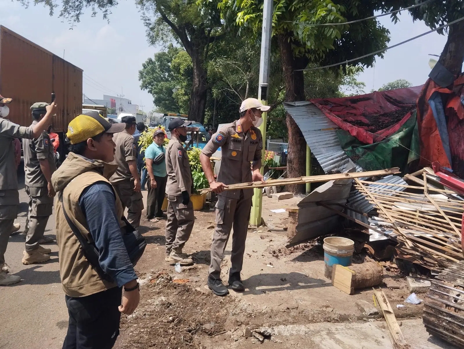 In an effort to maintain environmental order and comfort, the Depok City Civil Service Police Unit (Satpol PP) together with an integrated team carried out enforcement against street vendors (PKL) and illegal buildings (Bangli) along Jalan Raya Bogor, Cisalak Village, Sukmajaya District, on Thursday.