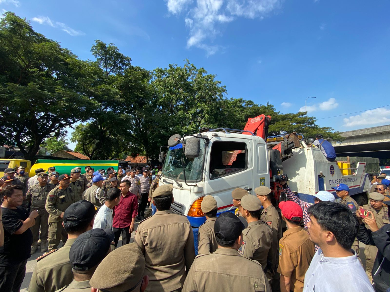 Residents also blocked heavy equipment from the Tangerang City Transportation Agency that was brought in for demolition.