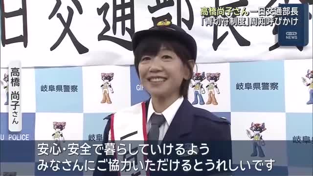Naoko Takahashi, the women’s marathon gold medalist, served as the one-day chief of the traffic department for the Gifu Prefectural Police, urging traffic safety.