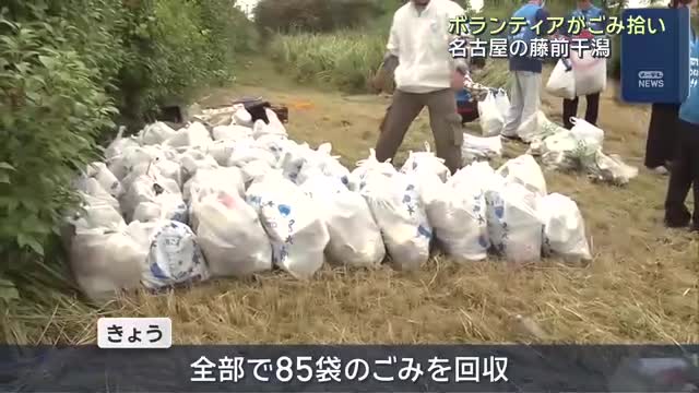 Volunteers collected trash at the Fujimae tidal flat in Nagoya, a site visited by many wild birds.