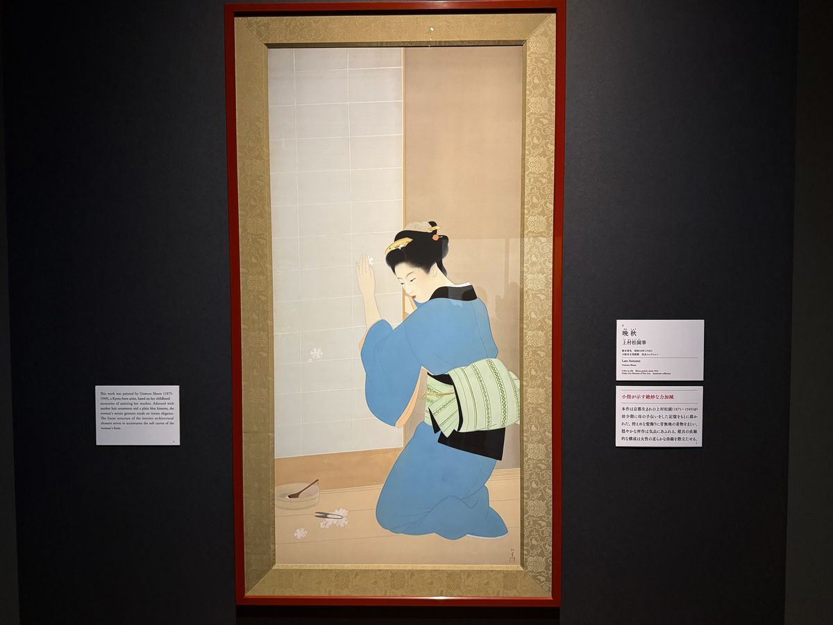Each chapter has its own exhibition area. The prologue, titled “The Beginning: Telling Stories with Masterpieces,” displays representative works from each collection that can be called the museum’s identity.“Late Autumn” by Uemura Shōen, 1943, Osaka City Museum of Fine Arts, Sumitomo Collection, Full Term