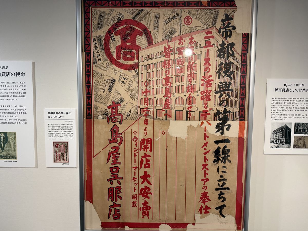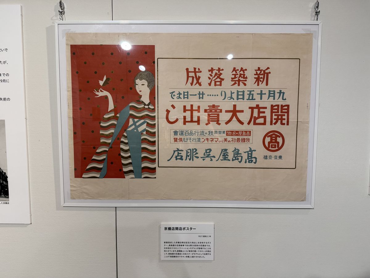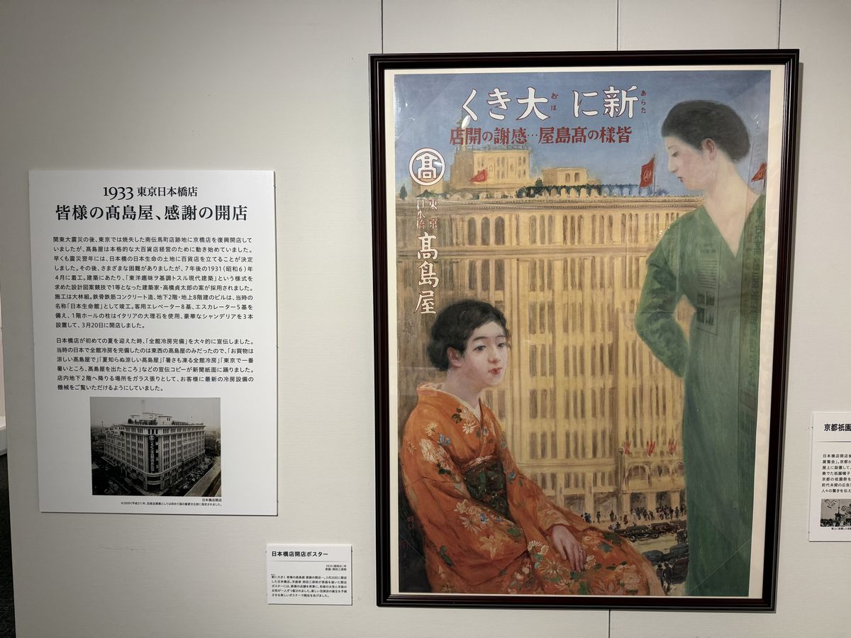 According to explanations provided, the “Takashimaya Market” written on the poster refers to a food section opened in the basement, which became the prototype for today’s “depachika” (department store basement food halls)!
