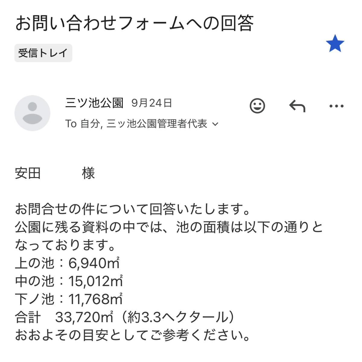 Mitsuike Park was overwhelmingly in first place, but since the individual pond sizes weren’t listed on the official website, I emailed the Mitsuike Park Management Office. Here are the results↓