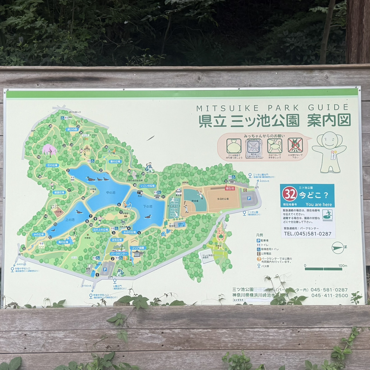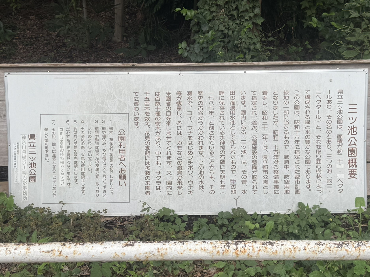 A signboard describing the history of Mitsuike Park