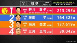 «Ожесточенная борьба на выборах в Сенат Гифу: Ацуко Вакаи, четырехкратная чемпионка мира по каратэ от ЛДП, одерживает победу на фоне скандала со сберегательным фондом «