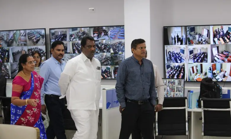 Министр пояснил, как Командный центр обеспечивает мониторинг всех государственных младших колледжей в реальном времени с помощью систем видеонаблюдения и распознавания лиц. Он сообщил, что 430 государственных младших колледжей по всей Телангане теперь полностью охвачены видеонаблюдением.