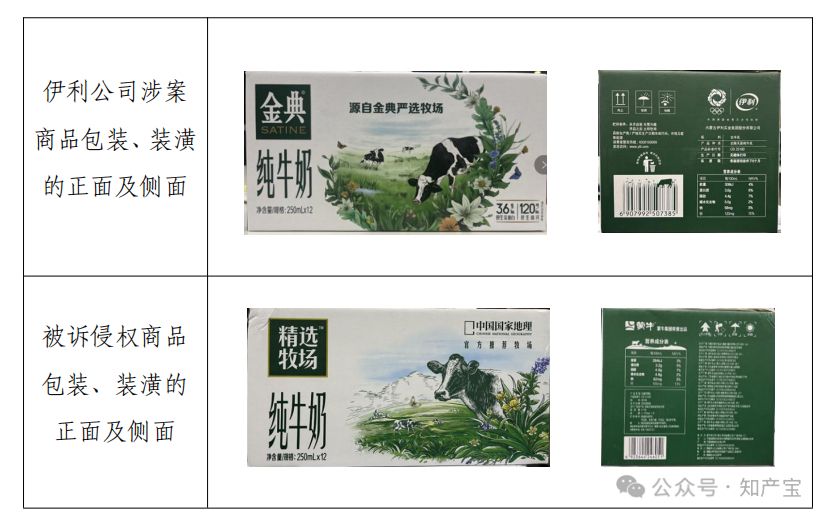 Высший народный суд провинции Цзянсу указал в решении, что, хотя такие элементы дизайна, как коровы, пастбища, цветы, растения и зелёные цвета, являются обычными для упаковки и внешнего вида молочной продукции, конкретное выражение каждого элемента, то, как элементы комбинируются и располагаются, выбор цвета и их сочетание могут приводить к разным стилям дизайна и эффектам. Наличие общих элементов дизайна в упаковке и внешнем виде продукта не обязательно означает отсутствие у них различительной способности или способности идентифицировать источник происхождения товара.