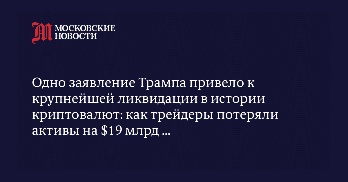 В ночь на 11 ноября произошло резкое падение стоимости цифровых активов. Это случилось после того, как президент США объявил о дополнительных 100% пошлинах на товары из Китая. Американский лидер не исключил, что они вступят в силу уже в ноябре.